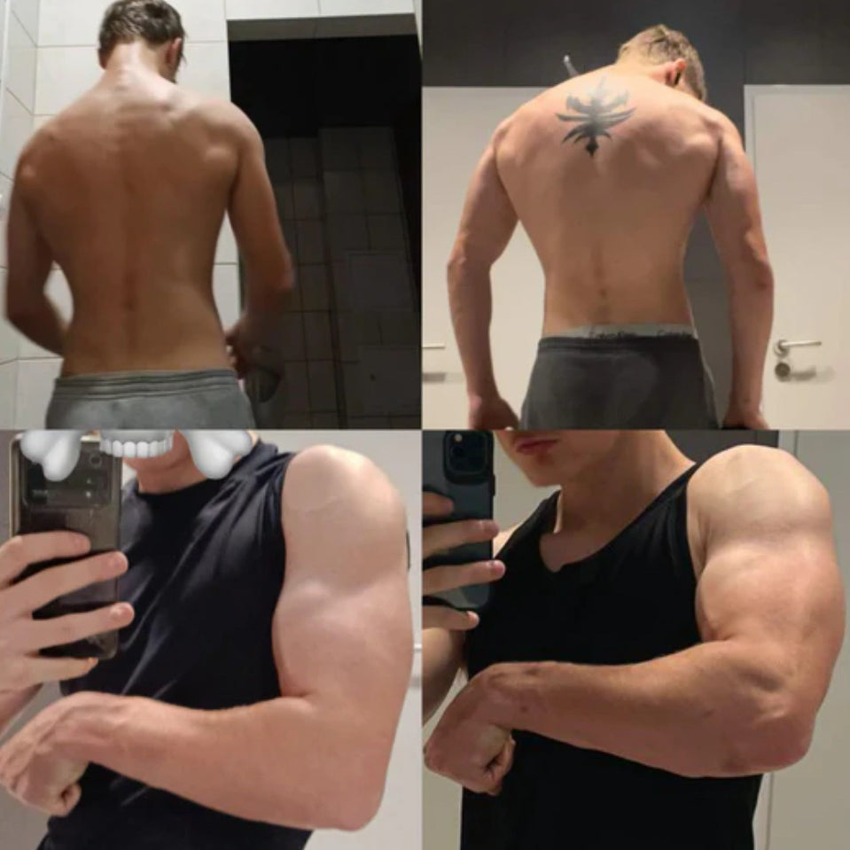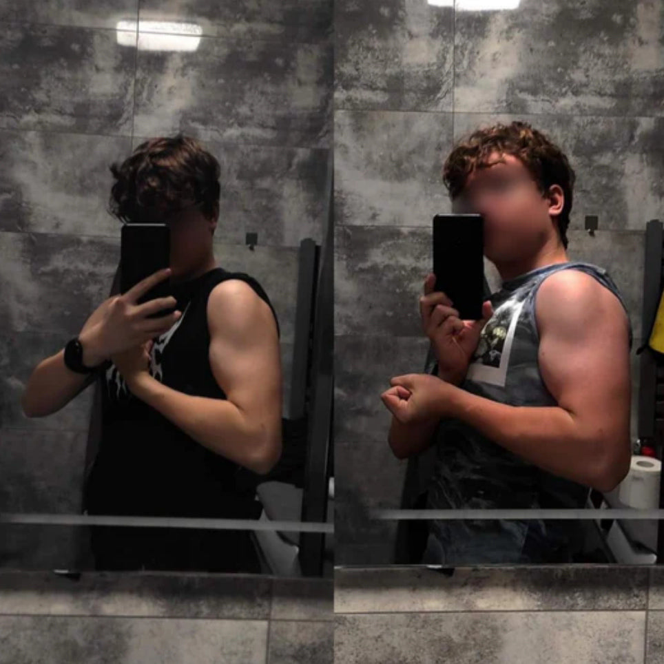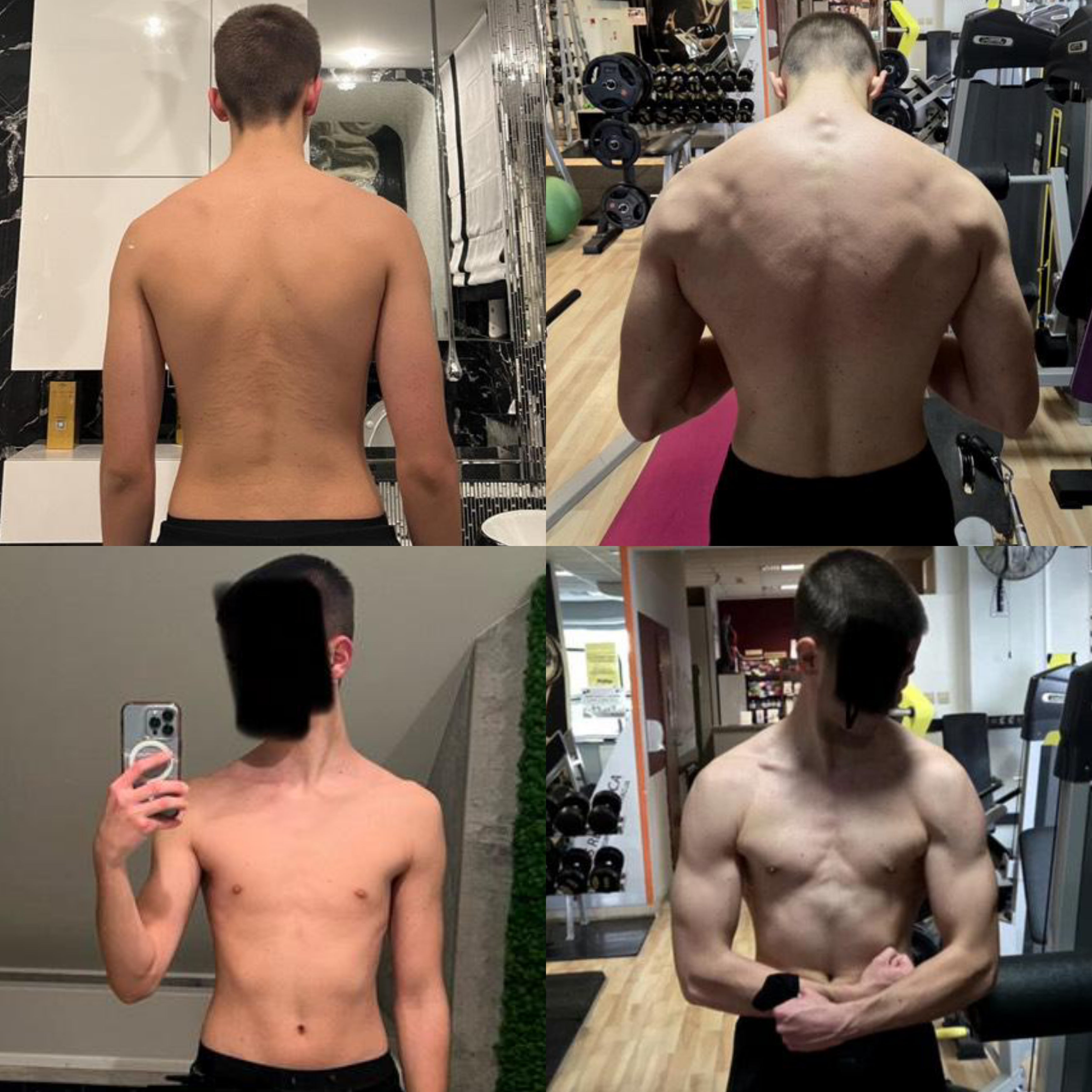 (Przemiana zajęła 5 miesięcy, podczas których był jeden miesiąc przerwy od treningów) "Pierwszy raz od swojej długiej przygody z siłownią zauważyłem realny progres. Siła i sylwetka poszły w górę. Wygrałem zawody z wyciskania głównie przez ten plan, bo wcześniej średnio mi szło, a teraz wycisnąłem ciężar pod którym jeszcze niedawno się dusiłem"